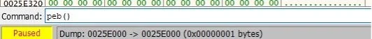Figure 4 - Locating PEB in debugger